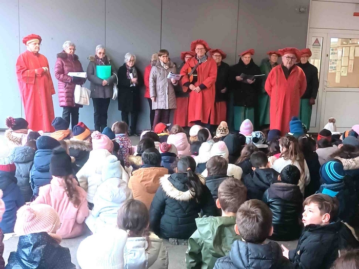Tradition : Présentation de la confrérie Saint-Nicolas de Yutz aux élèves de l'école Louis Pasteur.