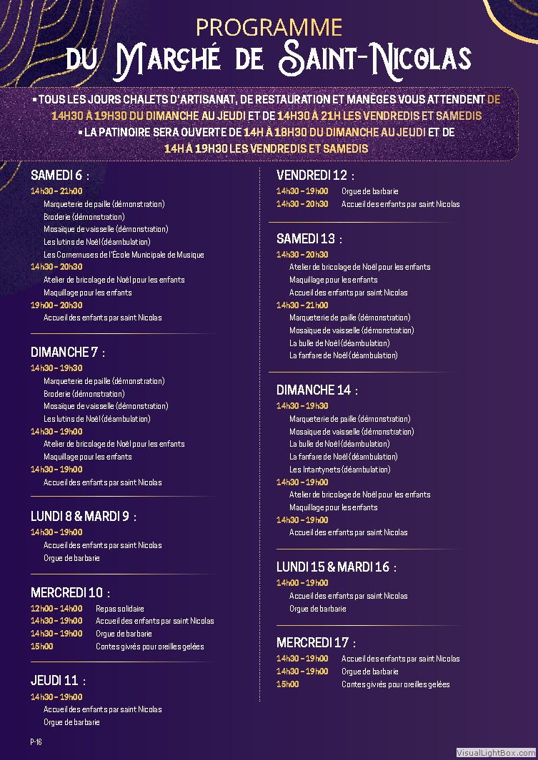 Le Marché de Saint Nicolas est placé cette année comme l'an dernier sur l'esplanade de la Brasserie à Yutz et ouvre ses portes tous les après-midis :