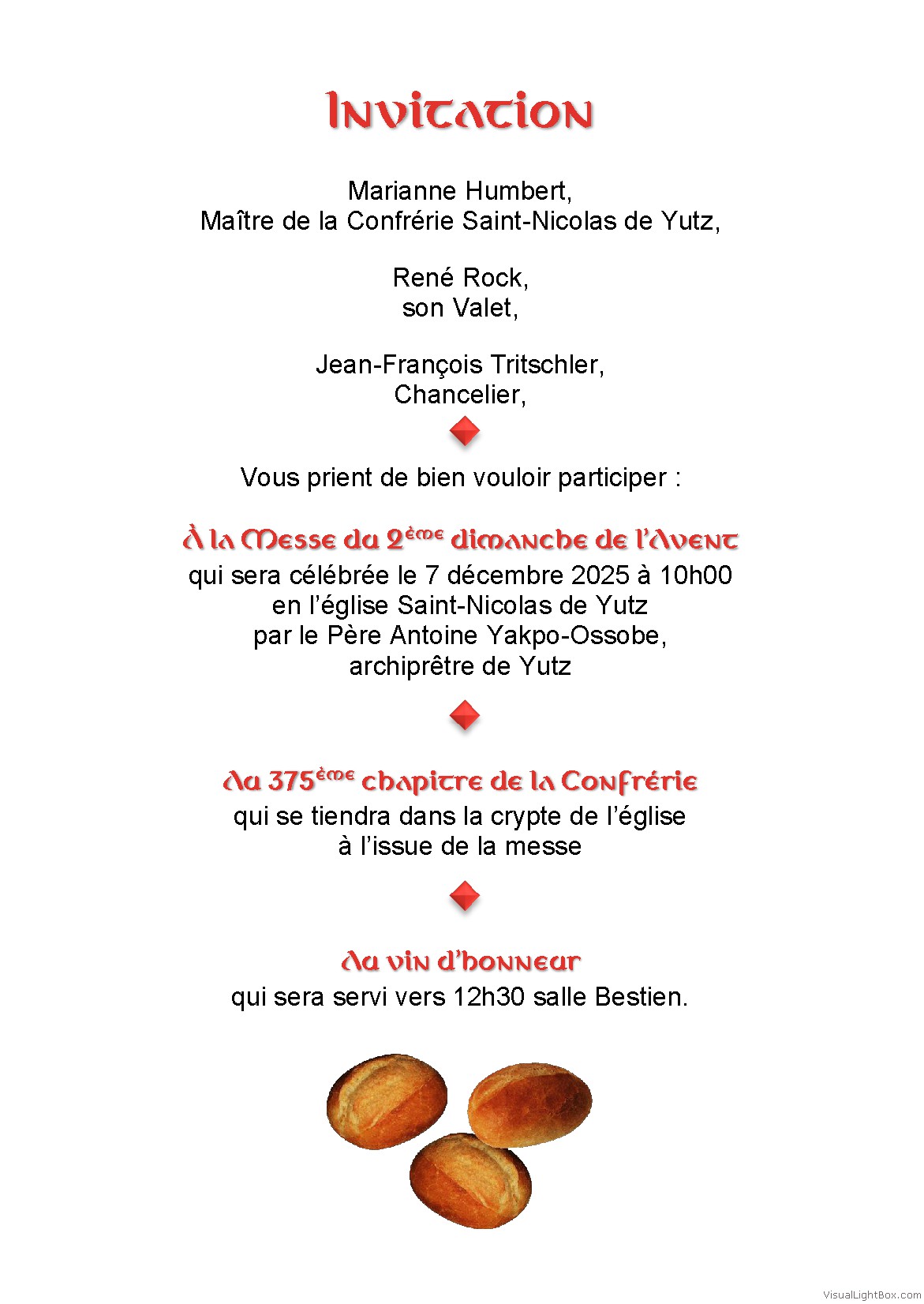 L'invitation reçue par tous les confrères de la Confrérie Saint-Nicolas de Yutz