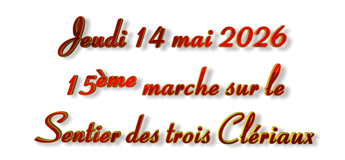 Nous sommes heureux de vous annoncer la 15ème édition de la marche sur le Sentier des trois Clériaux ... pour plus d'informations, cliquez sur l'image ci-dessous !